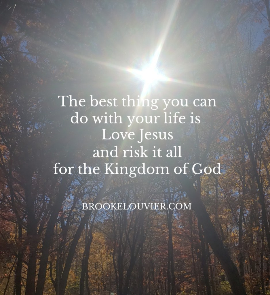 Risk it all for the Kingdom of God. On the other side of simply surviving, that is stirring, again. It started 12 years ago, maybe 18 if I am being honest, maybe even further back, 30 years ago when I was 5 and knew I was going to be a writer and change the world with my words. That was a heavy weight to bear, before I realized that The One who created me carried it for me. I shouldered other burdens too, ones that made me afraid of people and the darkness, that nearly silenced my voice figuratively and literally.